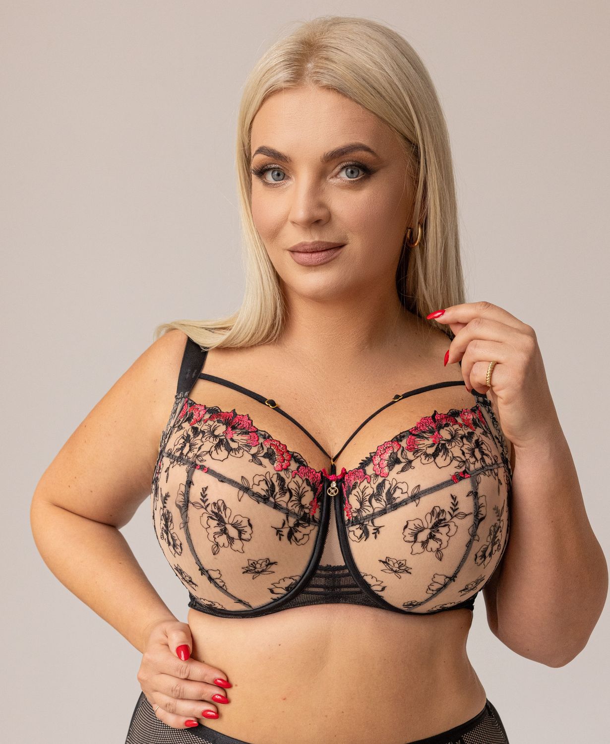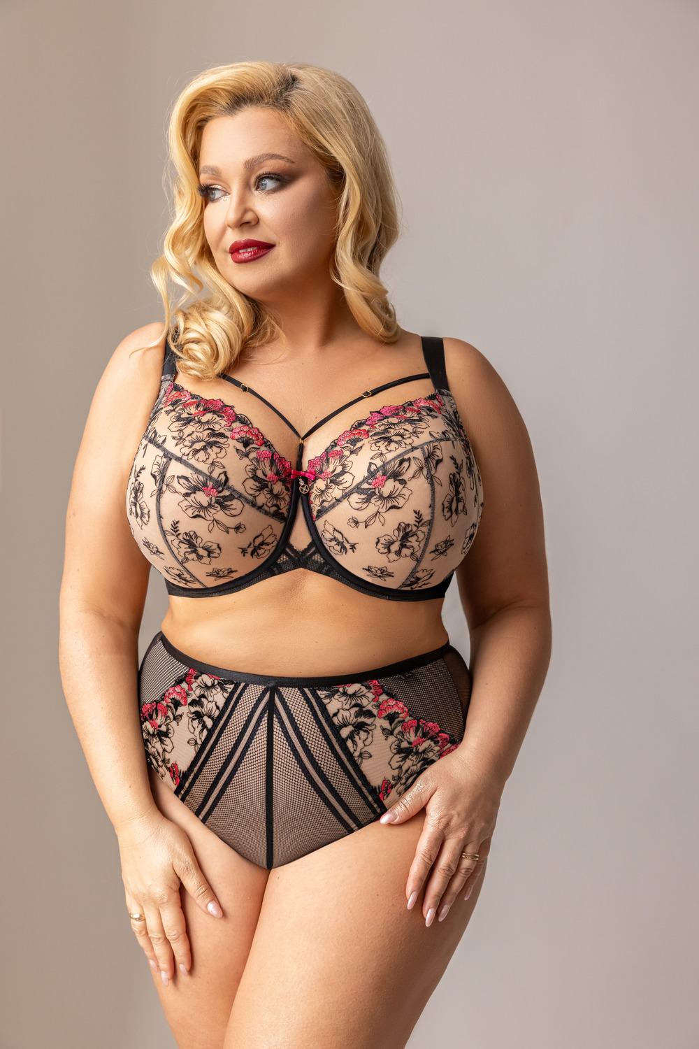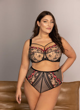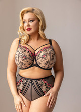 Biustonosz full cup wyróżnia się pełnymi, zabudowanymi miseczkami, które obejmują całe piersi. Dolna część miski cięta jest na trzy części. Dzięki bocznym panelom produkt dodatkowo zbiera biust z boków, pięknie go eksponując, a dodatkowo maskując niedoskonałości w rejonie pachy. Produkt zapewnia stuprocentowe poczucie komfortu oraz skutecznie podtrzymuje biust niezależnie od jego wielkości. Świetnie sprawdza się dla dużych i luźnych biustów. Dodatkową zaletą tego modelu jest bardzo bogata gama rozmiarów, różna szerokość ramiączek oraz zapięć z tyłu.